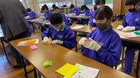 また、折り紙を、素手で折った場合と、軍手をはめて折った場合とを比べさせ、